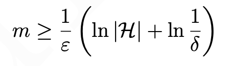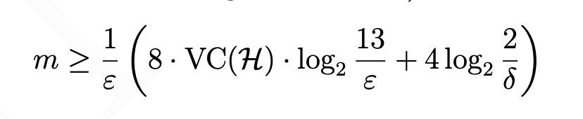 This presents a problem since most hypothesis spaces are actually infinite in size! To handle infinite spaces, we turn to the concept of Vapnik–Chervonenkis dimensions, which measures a function's ability to 'shatter' or split points. With this concept in hand, it turns out we can put a bound on sample sizes even with infinite hypothesis spaces: