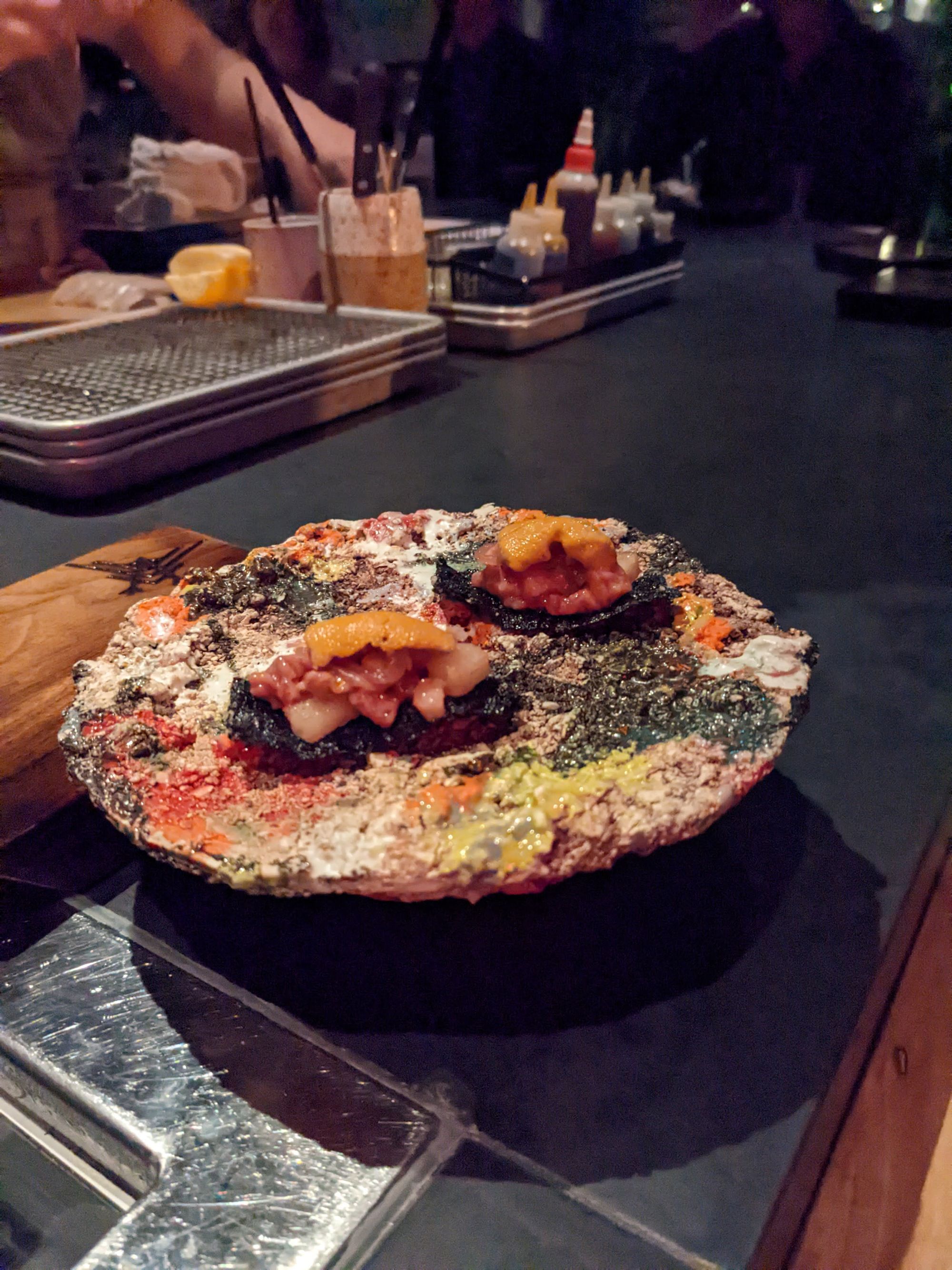 Robin had a real emphasis more fatty and western favourite pieces like tuna, trout, uni and caviar. There was a real emphasis on using sauces and toppings to either elevate or balance out the fish. Some particular highlights: