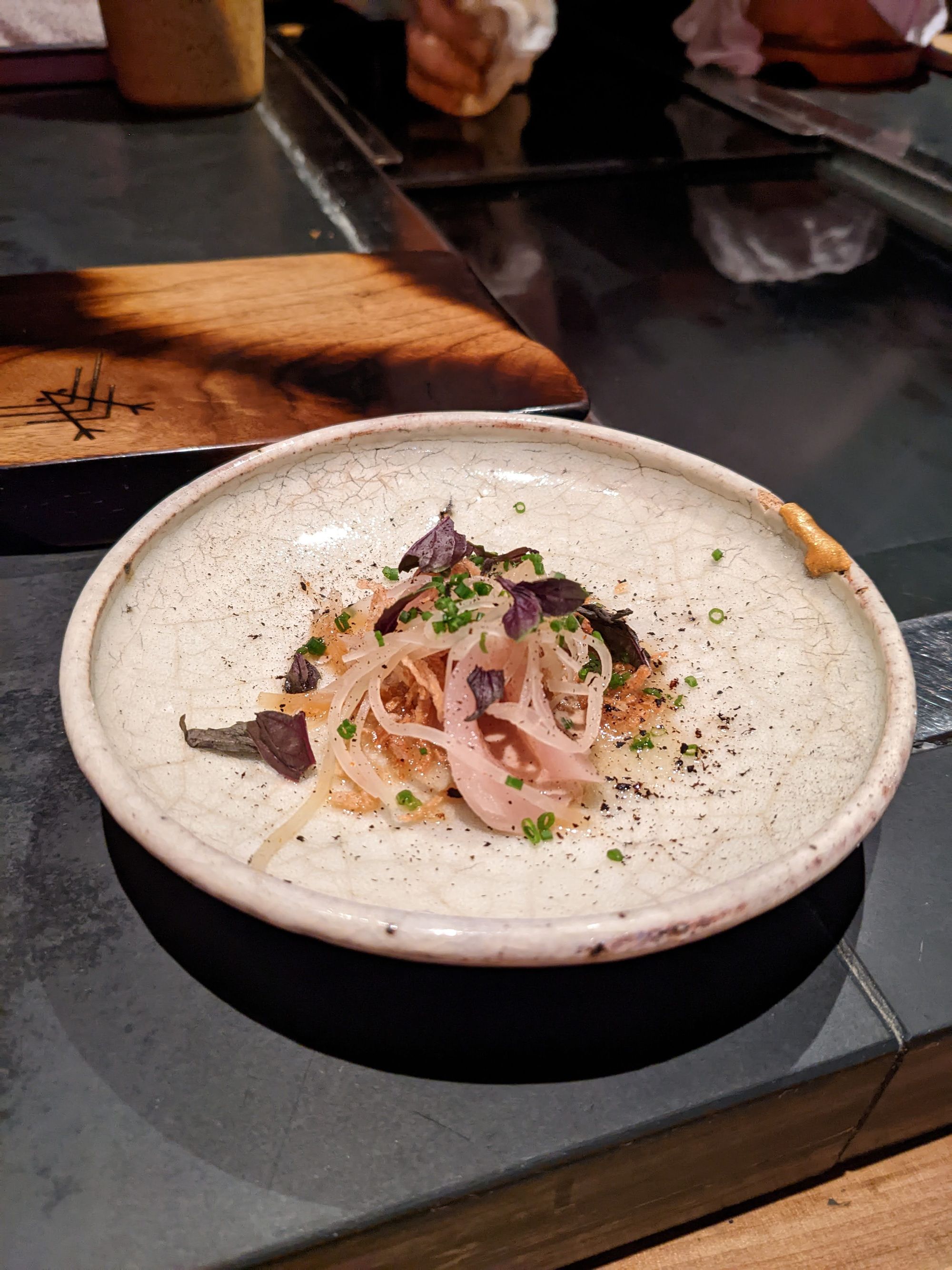 2) Mackerel with chili oil - I love mackerel and it's usually great on it's own. The chili oil aded another layer that I wasn't expecting and was a very playful piece