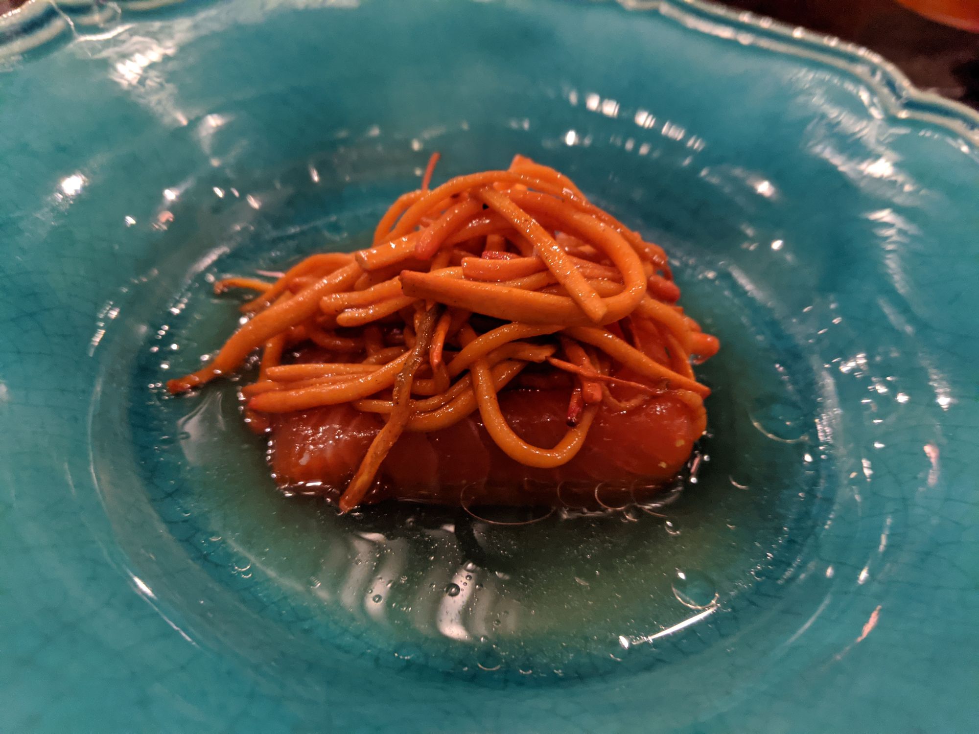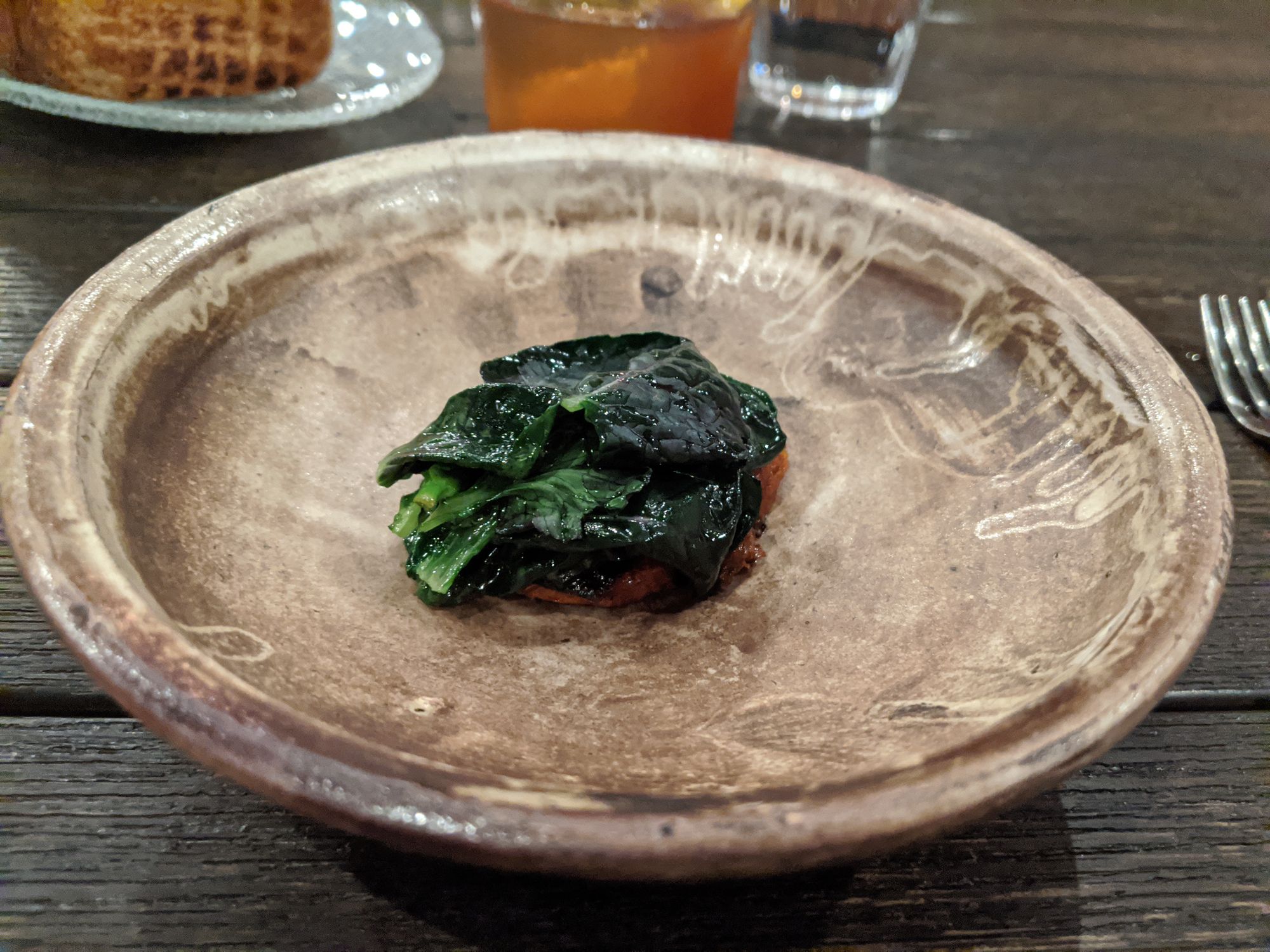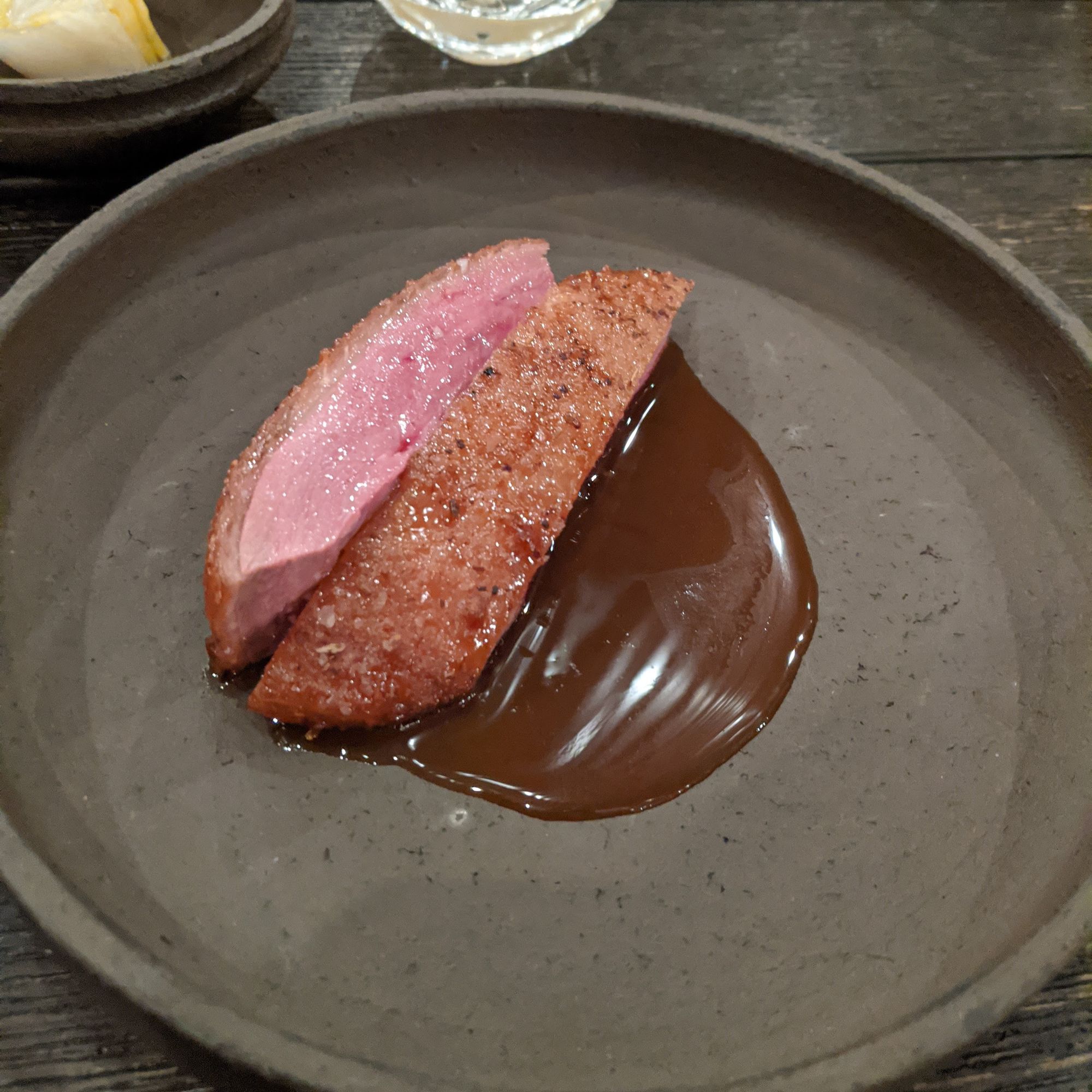 The amberjack dish was light, subtly smokey and refreshing. The passionfruit and succulent leaves added suprising complexity and textural contrast to a suprisingly simple dish.