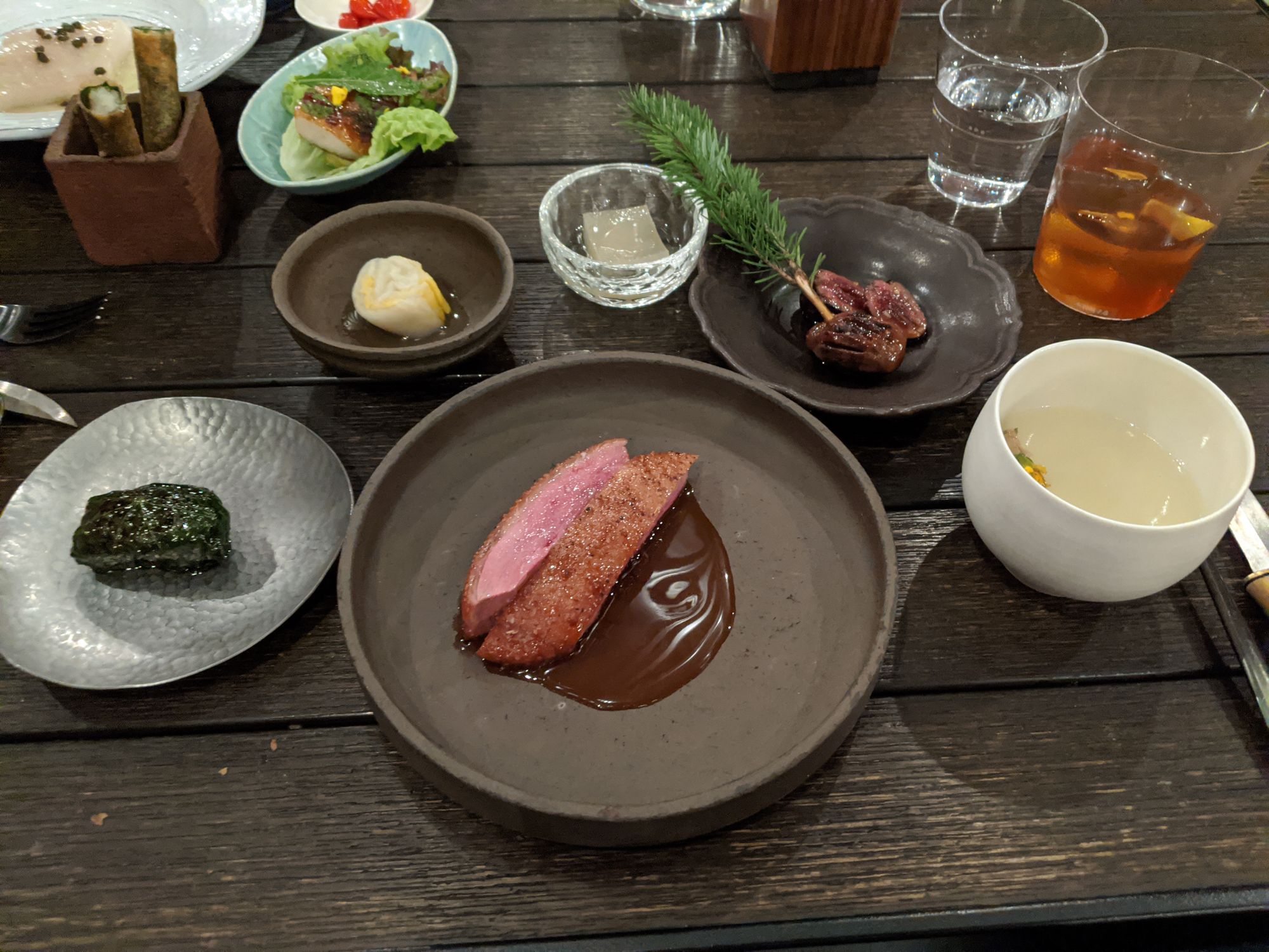 The main course was exemplary and was a textbook example of cooking with the whole animal and truly respecting your ingredients. We had a dry-aged smoked five spice duck, which was cooked to perfection. The fermented cabbage and pear was a perfect complement to help cut through the richness of the duck. The grilled gizzards were amazing and suprisingly not very irony that you'd usually associate with innards. The duck sausage was again super rich and flavourful. The bone broth helped tie together this incredibly rich course with a clean finish.