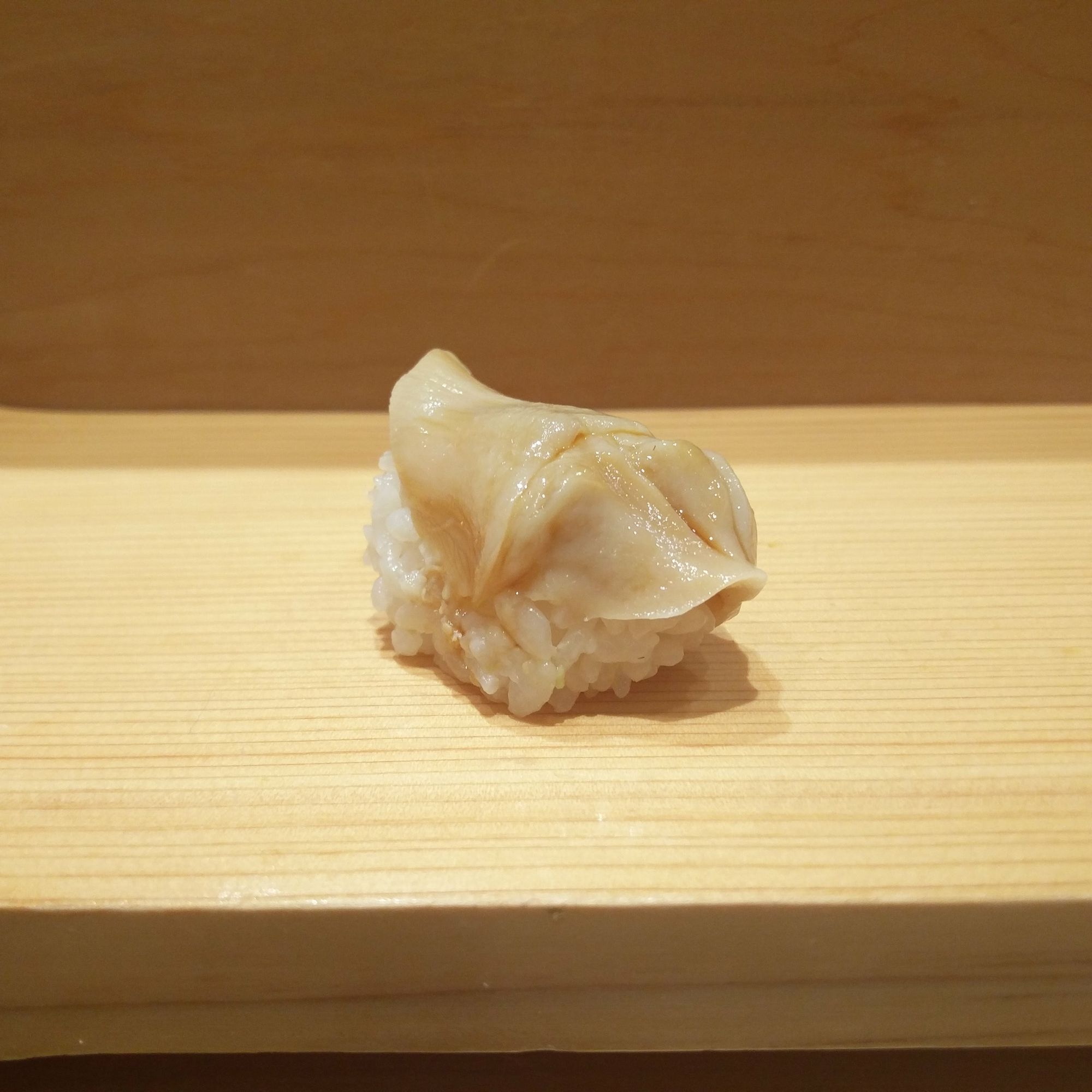 The biggest suprise of the meal I think was actually the quality of the sushi rice. During the course of the meal, Yasuda explained that the true key to sushi, among many small details was the contrast between the rice and the fish. There must be a contrast between the fish and rice's temperature, ideally the fish being midly cold and the rice at almost body temperature. Yasuda's sushi rice was also packed alot looser than what I've normally seen, and what a difference that makes! The looseness preserves the integrity of the rice granules leaving a much better mouth feel and flavour that I've yet to seen replicated anywhere else.
